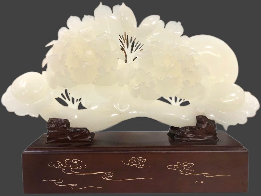Gậy như ý hoa đơn được làm từ Ngọc Onyx trắng kích thước: ngang 45 cm cao cả đế 34cm