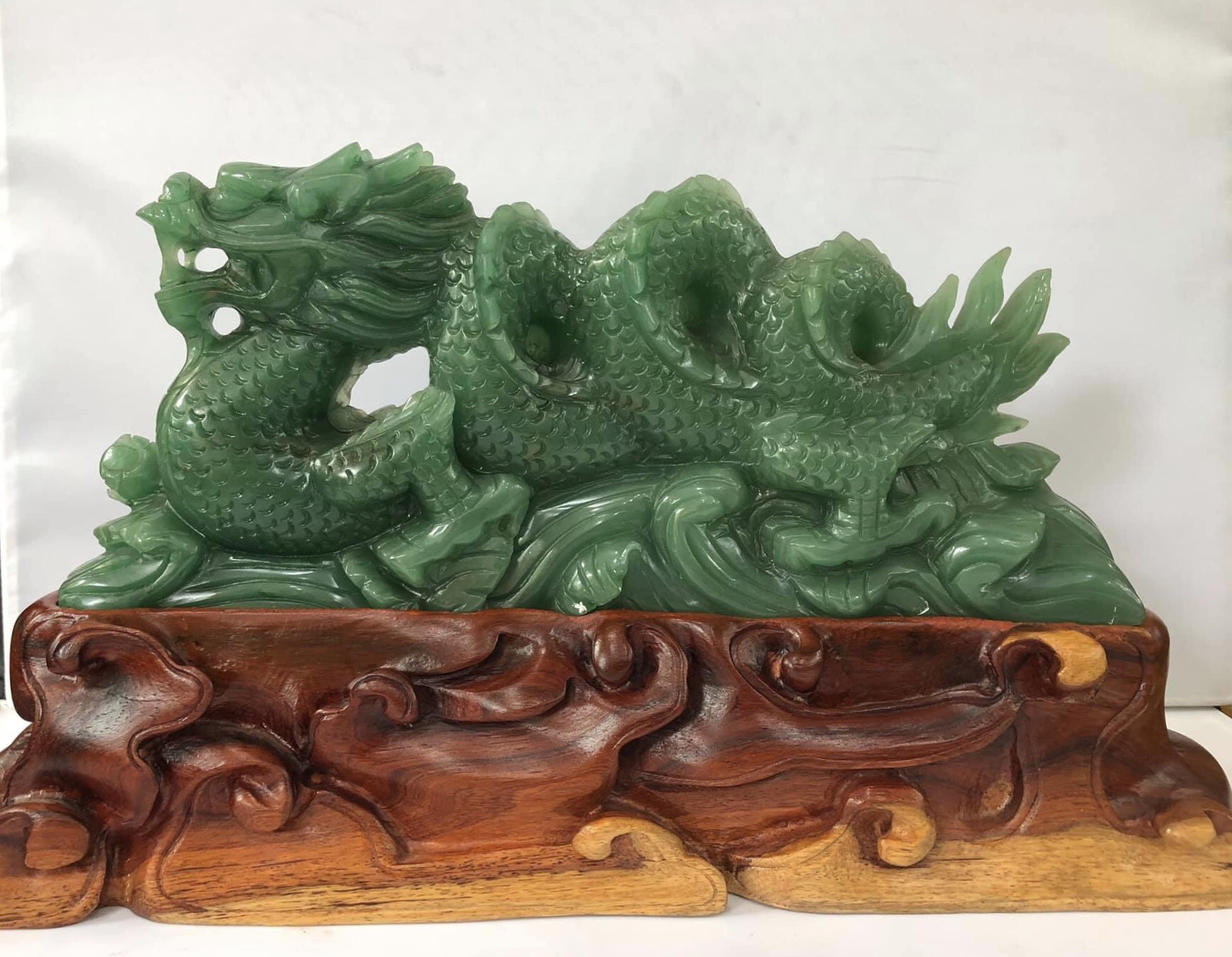 Tượng Rồng nhả ngọc từ ngọc Aventurin hiện sự oai nghiêm chính là một trong những hình ảnh tiêu biểu, mang nhiều nét đặc trưng trong bộ sưu tập chạm khắc của đá quý Quang Đông.